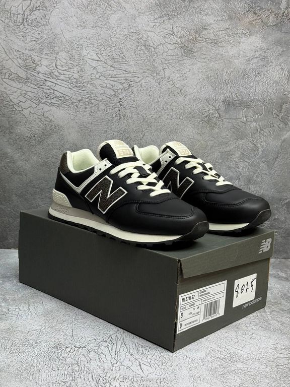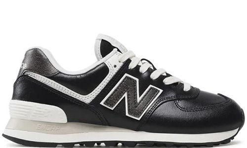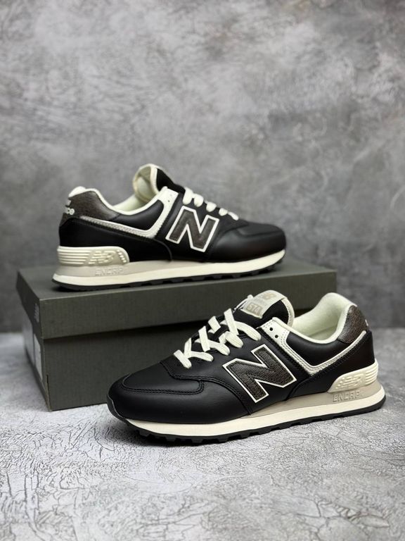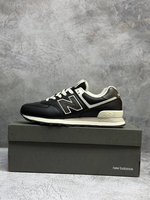Кожаные кроссовки в насыщенном черном цвете с гладкой текстурой и узнаваемым силуэтом 574. Универсальная модель для повседневной носки с надежной амортизацией.
